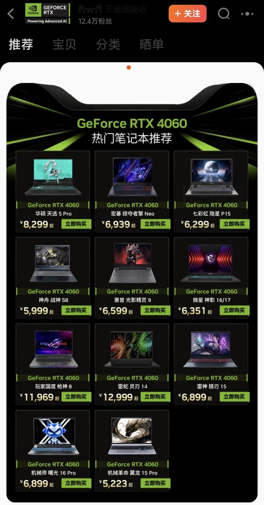 有网友询问英伟达官方旗舰店客服有关商品下架一事,客服称该旗舰店商品仅供展示,并不直接售卖,如想购买商品可以选择合作的店铺进行购买。目前,在该旗舰店首页上,依旧有其他搭载了英伟达显卡的笔记本产品,点击后则会正常跳转到其他合作厂商的官方旗舰店,并没有受到影响。