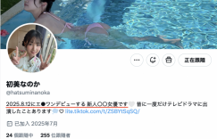 是大物啊!为什么这么说?因为这位「初美なのか(初美菜乃花)」在X(https://x.com/hatsuminanoka)的自我介绍栏说了,她是「2025.8.12にエ●ワンデビューする 新人〇〇女優です」,请让吃了哆啦A梦翻译蒟蒻的我来解释一下: