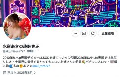 终于,现身了。还记得这位「水彩あき(水彩亚纪)」吗?月初,她戴着口罩以神秘女郎之姿在片商Dahlia出道,虽然没有露脸,不过从她在X(https://x.com/aki_mizusa777)说自己在2010年于片商h.m.p出道,也在S1及SOD担任专属女优来看,答案只有一个,她,就是筿原杏!