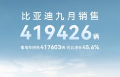 比亚迪公布9月份销量数据 销售汽车419426辆